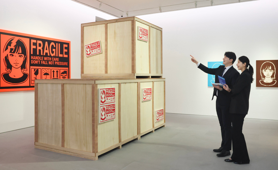 특히 미공개 신작 50여 점을 포함해 작가의 작품 세계를 집약적으로 조망하는 대표작 아카이브를 선보이며, 작가가 갤러리 벽면에 직접 제작한 대형 벽화도 감상할 수 있다. 아카이브 중 과거 아디다스와 협업한 스탠스미스 라인이 눈길을 끈다.