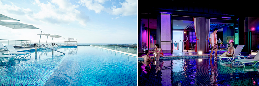 저녁 시간에는 본관 루프탑에 위치한 피크포인트에서 진행되는 성인전용 해피아워 ‘피크 타임(PEAK Time)’ 2인 이용권을 제공해 아름다운 중문의 해변을 내려다보며 뜨거운 여름 열기 못지 않은 강렬하고 핫한 제주에서의 밤을 만끽할 수 있도록 하였다.