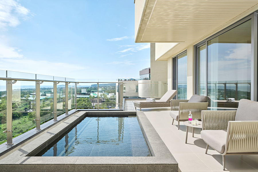 ‘프레스티지 힐 스위트’는 힐 스위트관 내 위치한 193.1m2 규모의 최상급 객실로4인부터 최대 8인까지 투숙이 가능해 패밀리 고객을 위한 휴식 공간으로도 제격이다. 두 개의 침실과 거실, 별도의 응접실이 준비되어 있으며 야외 발코니에 마련된 프라이빗 풀을 이용하며 아름다운 제주의 사계절을 만끽할 수 있다.