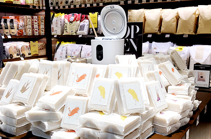 1인 가구 및 맞벌이를 위한 상품도 준비했다. 과거 10~20kg씩 대량을 구매하기보다는 소포장을 선호하는 트렌드에 맞춰 300g씩 포장한 진공쌀도 선보인다. 특징이 다른 여러가지 품종을 다채롭게 체험해보고 싶어하는 밀레니얼 세대를 겨냥한 상품이다. 쌀과 관련된 밥솥 및 식기 등 생활용품도 함께 구매할 수 있도록 한 것도 돋보인다.