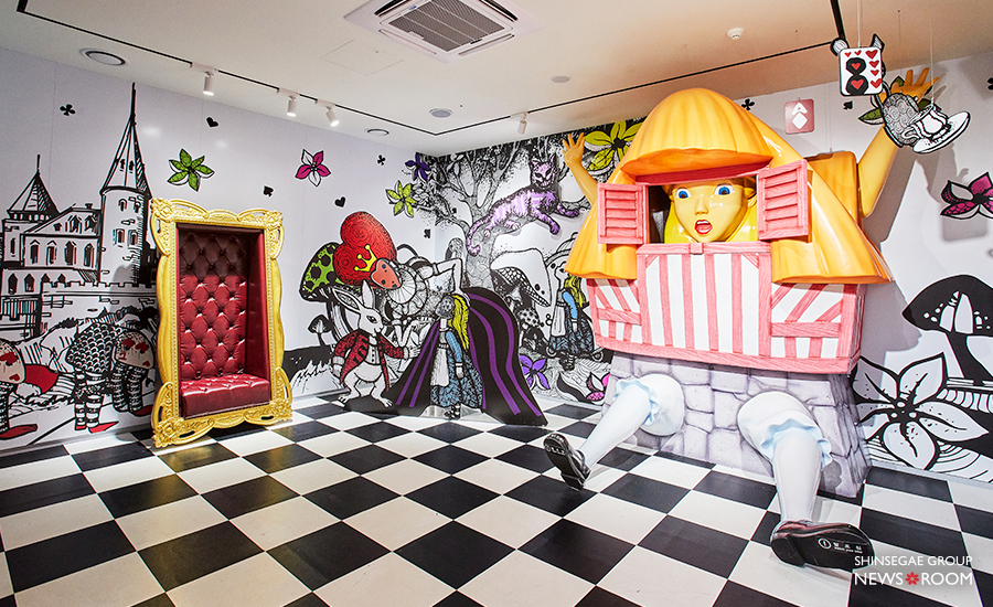 마치 앨리스가 된 듯 토끼를 쫓아가자 유쾌한 구성의 포토존이 기다린다. 관람객들은 동화 속 하트 여왕이 되어 사진을 찍어 볼 수도 있고, 거인이 된 앨리스와 함께 포즈를 취할 수 있다.
