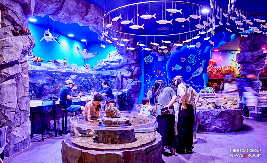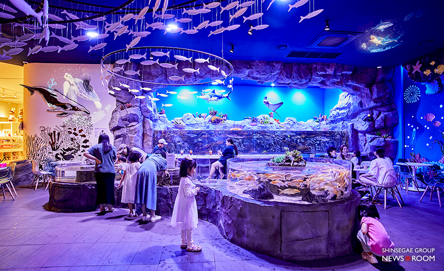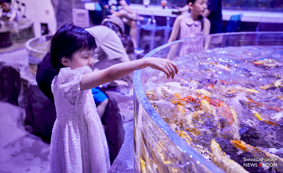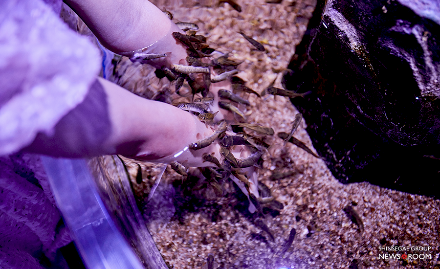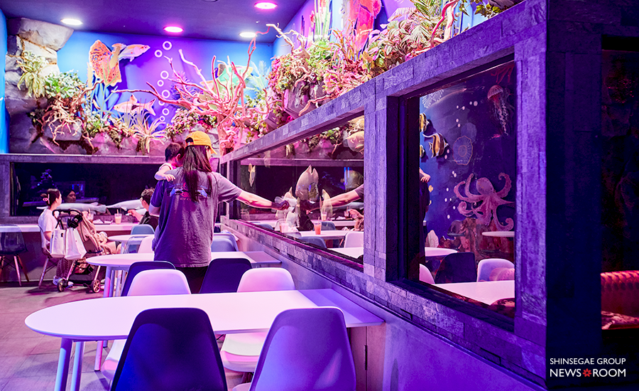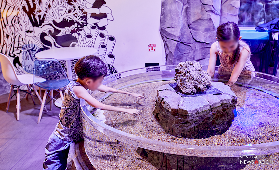 테이블은 각종 어항 앞에 마련돼 있어, 유영하는 물고기를 관찰하며 휴식을 취하는 고객들이 많았다. 신기함이 가득한 표정으로 물고기에게 밥을 주는 아이들도 눈에 띄었다. “아빠 이거 간지러워!” 닥터피쉬 체험 수조에서 체험을 하던 한 아이는 크게 웃음을 터뜨렸다.