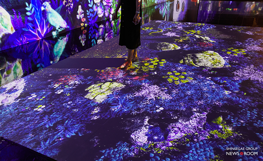 그 일환으로 지난해 신세계건설은 미디어 아트 사업에 진출했다. 2022년 5월 오픈한 ‘매직플로우’는 국내 최초의 미디어 기반 동물테마 스토리파크 ‘원더래빗’과 최근 각광받고 있는 식음시설인 ‘아쿠아리움 카페’를 결합한 신개념 체험 공간이다.