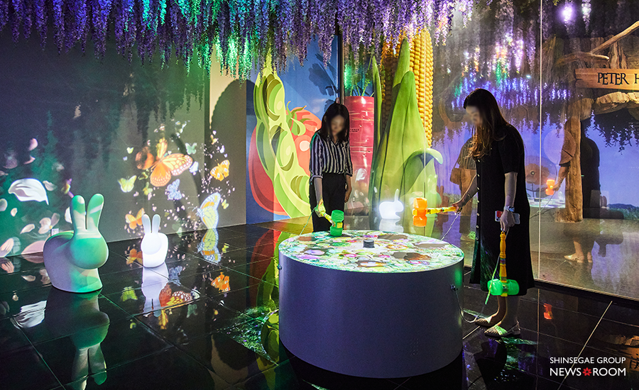 아름다운 숲속을 지나자 머리 위로 흐드러진 라벤더와 꽃향기가 풍기는 ‘보랏빛 향기’ 공간이 등장했다. 바람을 불면 꽃잎이 날리는 섹션과 일명 ‘두더지 잡기’ 게임을 토끼로 치환한 미니 게임존도 함께 자리했다.