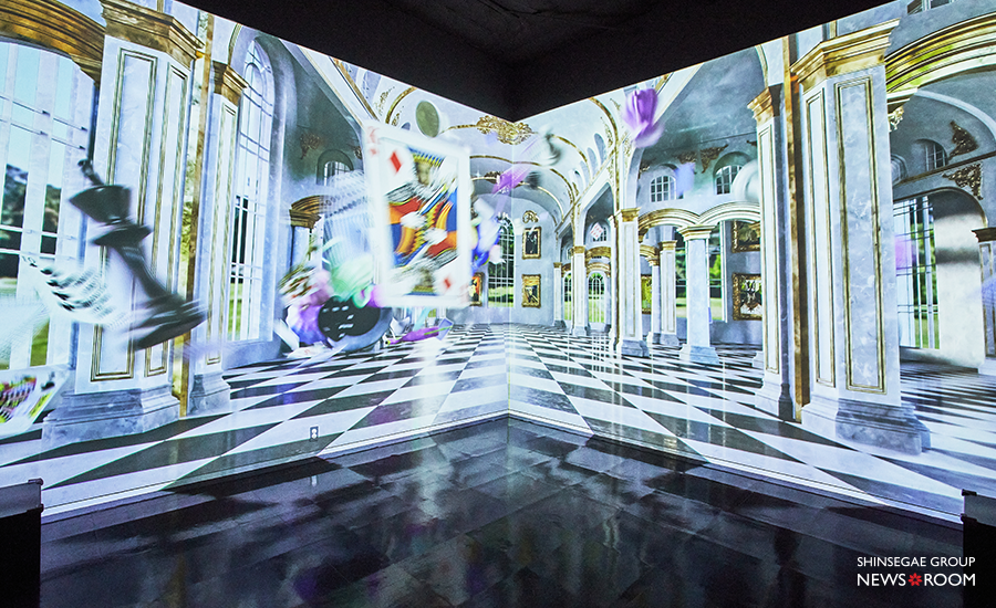 모래사장 위에 누워 휴식을 취하고 나가자, 마치 다른 세계에 온 듯한 포토존이 펼쳐졌다. 이곳은 『이상한 나라의 앨리스』 속 공간이다. 앨리스가 토끼를 따라 들어간 굴을 상상해 조성했다. 어두움 속에 반짝이는 미러볼과 주변을 둘러싼 거울로 깊이와 넓이를 알 수 없다. 관람객들은 시각적인 환상 속에서 앨리스와 흰토끼가 된 듯 즐겁게 사진을 찍었다.