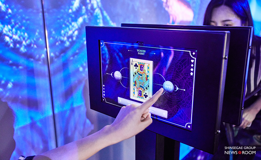 다음 전시관은 ‘이상한 중력의 방, 그래비티 룸’이다. 이곳은 카드 속으로 빠져드는 듯한 신비로움을 선사하는 공간이다. 키오스크에서 사진을 촬영하면 자동으로 얼굴을 인식하여, 관람객의 얼굴이 미지의 시공간 속으로 함께 빨려 들어가게 연출했다.