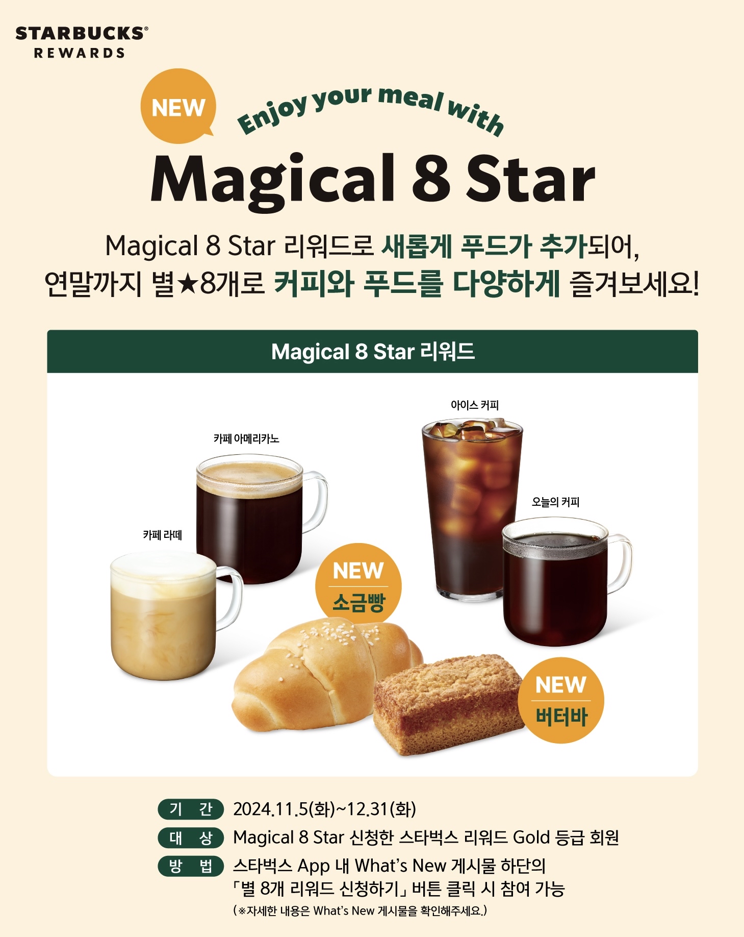 이제 푸드도 별 8개 쿠폰으로 즐긴다! 스타벅스, ‘Magical 8 star’ 리워드 혜택 강화