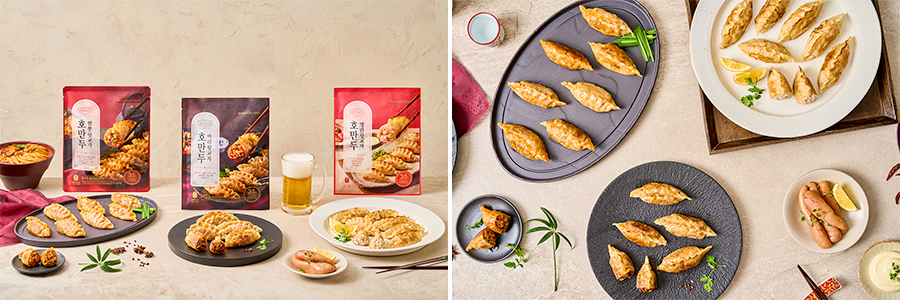‘호텔컬렉션 호만두’ 3종은 에어프라이어 또는 프라이팬 조리 시 바삭한 군만두로, 찜기나 전자레인지 조리 시 부드러운 찐만두의 형태로 취향에 따라 다양하게 즐길 수 있으며 조리 시간은 10분 내외로 쉽고 간편하다.