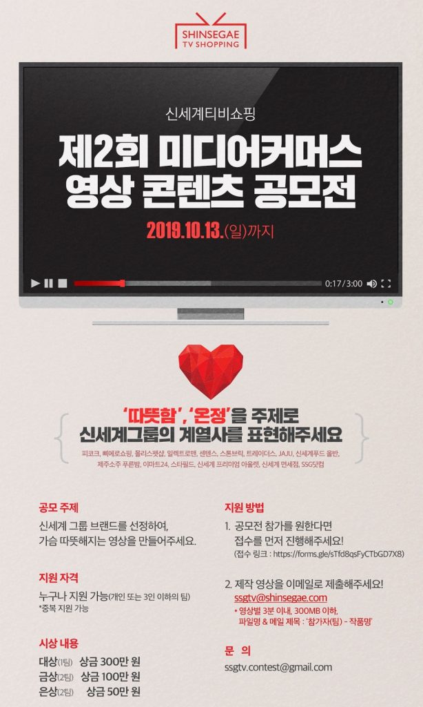 신세계TV쇼핑이 오는 10월 13일(일)까지 미디어 커머스 콘텐츠 크리에이터를 모집하는 `제2회 미디어 커머스 영상 콘텐츠 공모전`을 진행한다.