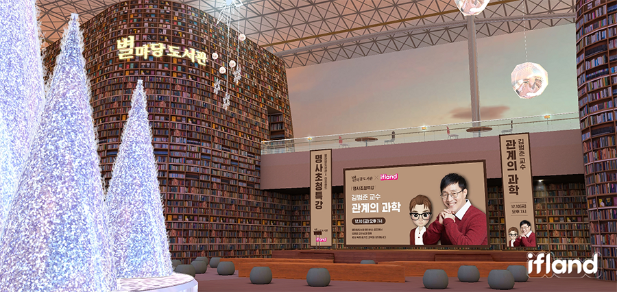 또한, 강연이나 공연 혹은 소통을 원하는 사람이라면 누구나 이프랜드 내 실제 별마당 도서관 모습이 그대로 구현된 ‘도서관’ 카테고리로 이동해 서로의 의견과 공감을 나누는 열린 무대로 활용 가능하다.