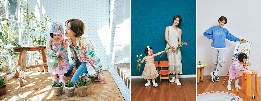 화보 속에서 이윤지는 딸 소울과 함께 화창한 봄 햇살 아래 요리, 책읽기, 그림 그리기 등을 즐기며 모녀의 사랑 넘치는 하루를 연출했다. 갭의 다양한 상품들을 활용해 엄마와 딸이 함께 입는 깜찍한 모녀 베프 패션을 제안한다.