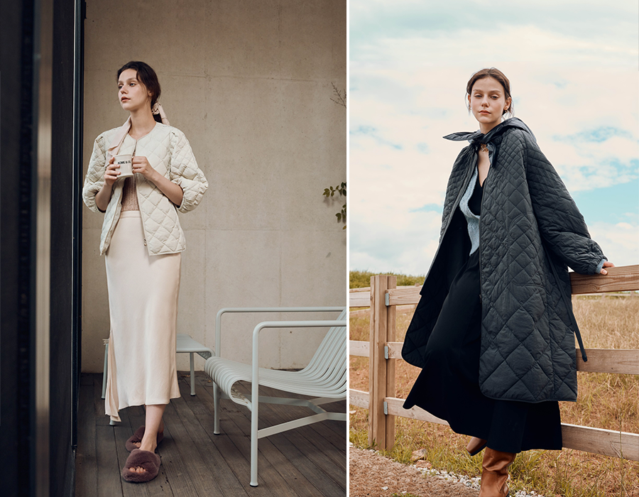 지컷 경량 패딩은 다이아몬드, 바둑판 모양부터 세로와 가로형 스트라이프까지 다양한 형태로 누벼 박은 퀼팅 디자인이 특징이다. 가볍고 편안한 착용감으로 집 근처, 가까운 곳으로의 여행 시 입기 좋아 ‘트래블(Travel) 퀼팅’이라는 이름을 붙였다. 무릎 라인을 덮는 긴 기장부터 허리 라인의 짧은 기장까지 다양하며 화이트, 블랙의 기본 색상부터 베이지, 오렌지까지 선택의 폭이 넓다. 상의 외투뿐만 아니라 패딩 소재 스커트, 팬츠 등도 함께 출시돼 한 벌의 셋업처럼 입을 수 있다.