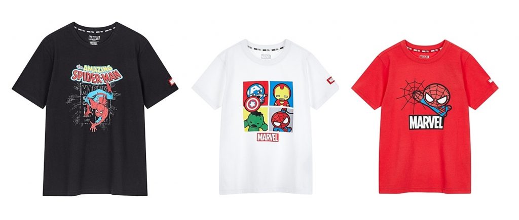아동용 티셔츠에는 마블 히어로의 특징을 살려 새롭게 디자인한 캐리커처를 그려 넣어 귀여움을 배가시켰다.
