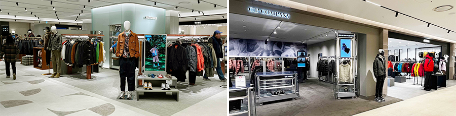 실험적인 소재와 고유의 ‘렌즈 와펜’이 특징인 ‘C.P.컴퍼니’, 이탈리아 특유의 세련되고 미니멀한 디자인의 ‘아스페시’, 고프코어룩의 대명사 ‘아크테릭스’, 프랑스 파리지앵 감성을 느낄 수 있는 ‘이로 맨’, 다양한 스트리트 스타일과 역사 속의 복장을 재해석해 고유의 정체성을 만들어가는 ‘이스트로그’ 등이 새로 들어섰다.