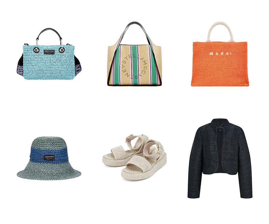 기존에는 밀짚 소재가 액세사리에 많이 활용되었다면, 올해는 의류에서도 만나볼 수 있다. 도톰한 방모나 원사를 꼬아 직조한 트위드는 소재 특성상 여름에는 착용하기 어려운 제품이었으나 올해는 라피아 소재를 활용한 트위드 재킷이 출시돼 한여름에도 즐길 수 있게 됐다. 라피아와 면 혼방 소재로 제작돼 가볍고 통기성이 우수해 더운 여름에도 시원하게 착용할 수 있는 제품이다. 크롭 기장, 오픈 재킷 스타일로 트렌디함을 더했으며, 비즈니스 룩 같이 격식 있는 자리에서도 착용 가능하다.