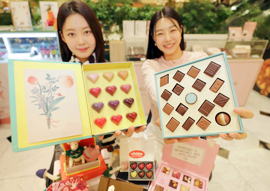 신세계백화점이 발렌타인데이를 앞두고 다양한 초콜렛 브랜드의 팝업스토어를 열고 초콜렛을 소개한다.