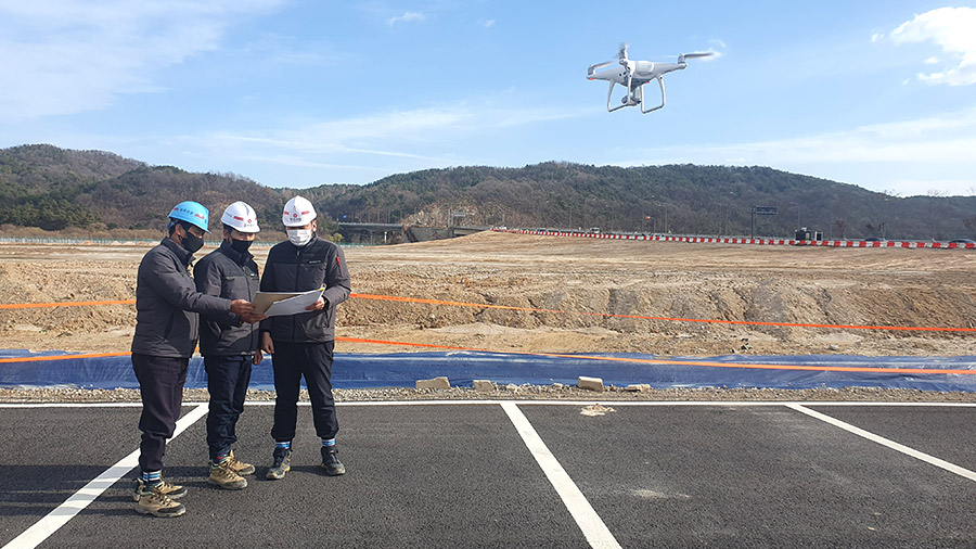 드론 플랫폼, 3D Laser Scanning, Cloud BIM 등을 도입하여 현장관리, 정밀시공, 품질 및 안전관리 업무에 적용하고 있는데 최근에는 LG유플러스와 협력하여 실시간 초정밀측위기술을 건설용 드론에 도입하는 테스트를 완료했다.