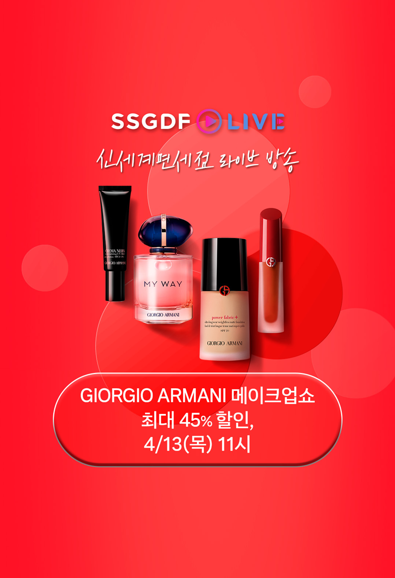 신세계면세점은 4월13일 오전 11시 라이브 방송 ‘갓딜라이브’를 통해 아르마니 뷰티의 풀 메이크업 루틴을 소개하는 메이크업 쇼를 선보인다.