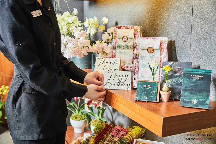 우선 상품을 제작하기 전 고객과 오랜 시간 충분한 상담을 진행해 니즈를 파악합니다. 상품 제작이 완료되면 고객에게 완성된 상품 사진을 전송해 피드백을 받는 과정을 거치죠. 카드에 들어갈 메시지를 캘리그래피로 디자인해 드리기도 합니다. 조선호텔 차량으로 상품을 안전하게 배송해, 마지막까지 세심하게 신경 씁니다.