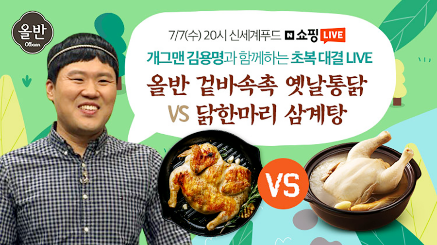 또한 오는 7 일 오후 8시 네이버 쇼핑 라이브를 통해 ‘올반 옛날통닭 vs 올반 삼계탕’ 콘셉트의 초복 맞이 특별 기획 라이브 방송도 진행한다. 개그맨 김용명과 함께 ‘올반 옛날통닭’ 3종(오리지널, 마늘간장, 고추)과 ‘올반 삼계탕’을 집에서 보양식으로 즐기는 방법을 재미있게 소개하고 방송 중 최대 3만원의 할인 쿠폰을 받을 수 있는 혜택도 제공한다.