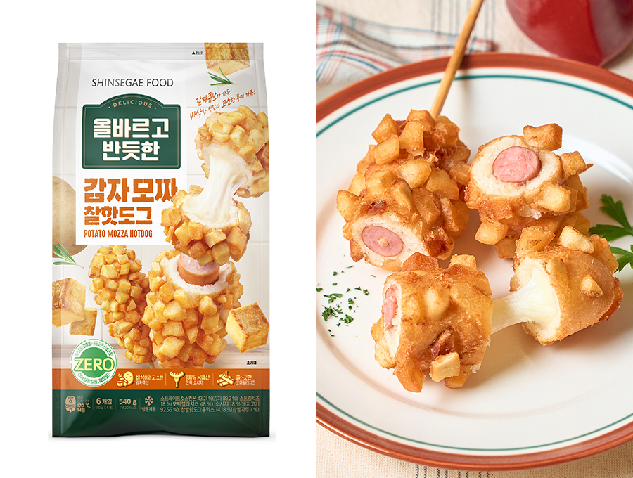 신세계푸드의 ‘올바르고 반듯한 감자 모짜 찰핫도그’는 온라인몰 쿠팡에서 판매하며 가격은 1만1980원(6입)이다.