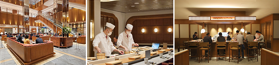 이 중 푸드홀은 쇼핑 중 간단히 한 끼 때우는 곳이 아닌, 사교모임과 비즈니스 미팅에도 손색없는 고품격 미식 공간을 표방한다. 호텔 칵테일바나 스시 오마카세 레스토랑에서 볼 수 있는 ‘카운터 테이블’과 개별 다이닝룸을 도입했다. 백화점 푸드홀에서도 눈 앞에서 셰프가 쥐어주는 스시와 손수 구워주는 고기를 맛볼 수 있게 된 것이다.