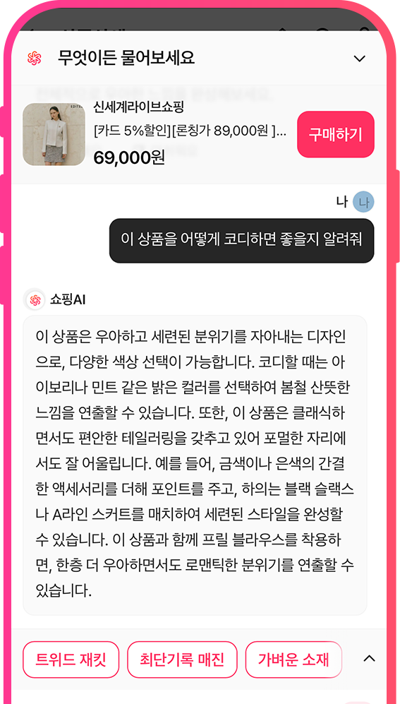GPT 모델을 도입해 스마트한 쇼핑 경험을 제공합니다.”