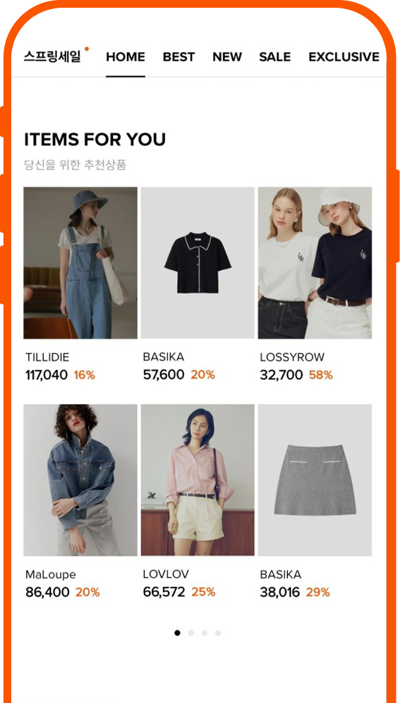 고객 취향에 맞는 브랜드와 상품을 먼저 추천해줍니다.