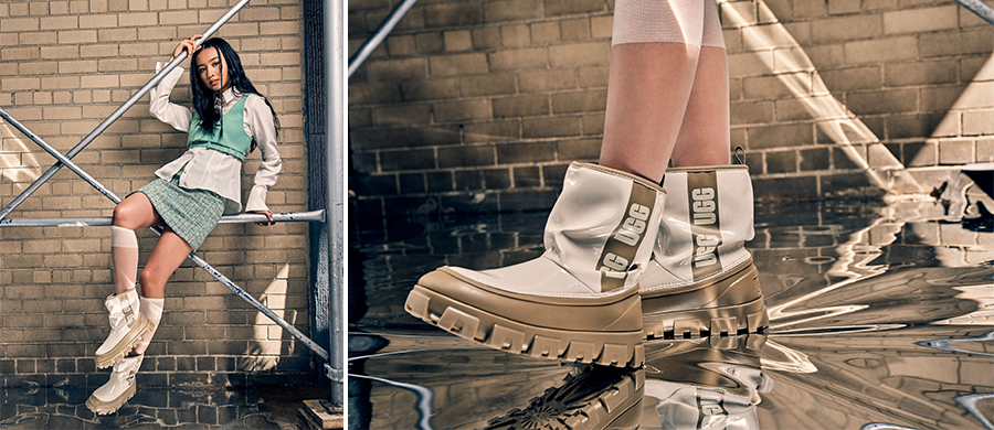 이번에 출시되는 ‘클래식 브렐라 미니’는 어그의 대표 아이템인 클래식 미니 부츠를 새롭게 재해석한 제품이다. 은은한 광택의 합성 가죽이 흘러내리는 듯한 루즈핏의 세련된 스타일을 완성해 캐주얼룩에는 물론 원피스나 스커트에 포인트를 줄 수 있다. 완벽한 방수 기능성 소재로 제작됐으며, 아웃솔(밑창) 또한 방수는 물론 가볍고 접지력이 뛰어난 TPE 소재를 사용했다.