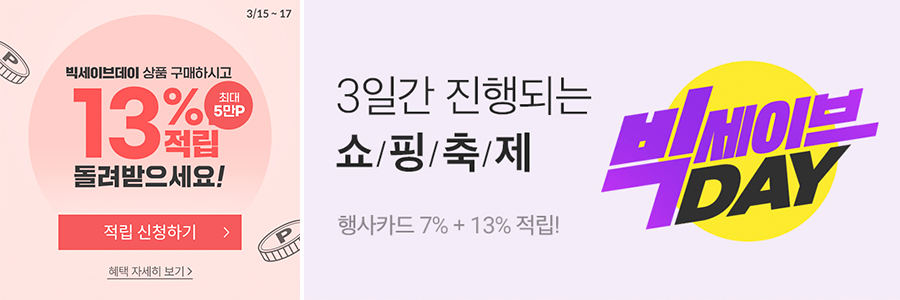 신세계라이브쇼핑이 오는 15일부터 17일까지, 행사상품을 모바일 앱으로 구매 후 응모한 고객에게 구매 금액의 최대 13%를 적립금으로 지급하고(최대 5만원), 3만원 이상 구매한 고객에게 7%의 행사카드 청구할인 혜택(최대 28만원)을 제공하는 ‘빅세이브 데이’ 프로모션을 진행한다.