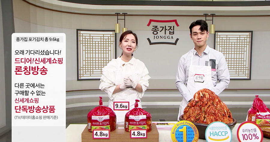 신세계라이브쇼핑 전용 상품인 종가집 ‘아삭한 포기김치’는4.8kg 제품 2개입으로 구성된다. 판매가는 65,900원이다. 방송 중 구매 시에는 행사카드 5% 할인과 모바일 구매 할인 혜택을 함께 제공한다.