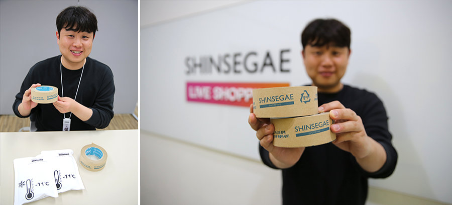 먼저 신세계라이브쇼핑은 5월 20일부터 친환경 수해리 테이프를 사용한다. 기존 대부분의 종이 테이프는 접착제 때문에 실제로는 테이프를 제거하고 박스와 별도로 버려야 하는 불편함이 있었다. 이번에 도입한 수해리 테이프는 접착제까지 물에 녹아 별도로 분리할 필요가 없어, 고객들은 칼로 자른 후 바로 종이박스와 함께 버려도 재활용이 가능해진다. 현재는 신세계라이브쇼핑의 물류센터에서 포장하는 상품들을 대상으로 사용되며, 향후 사용처를 더 확대할 예정이다.