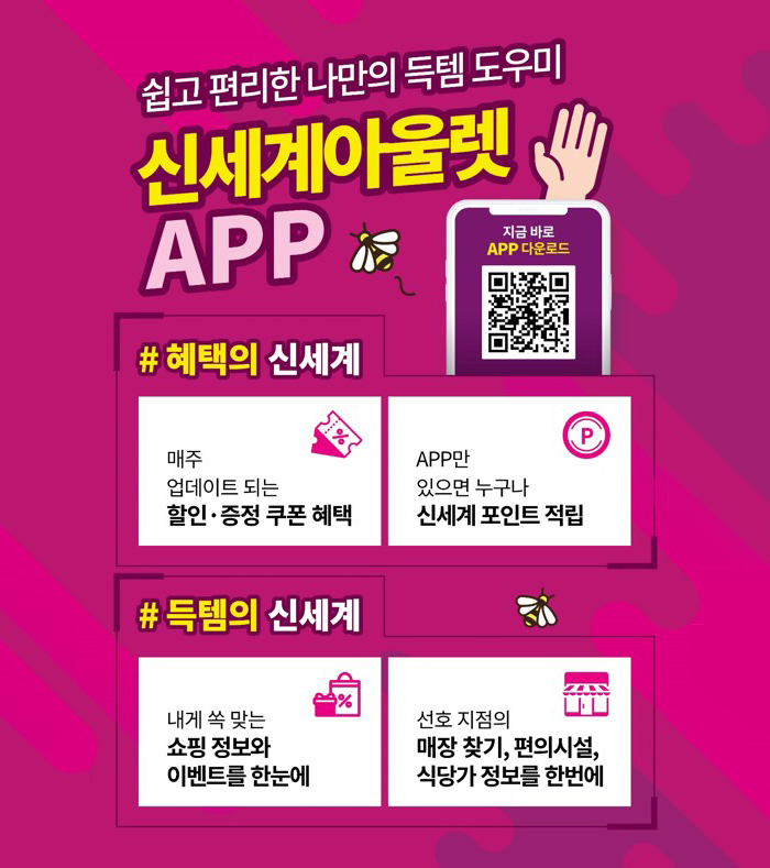한편, 신규 앱 런칭을 기념하여 쇼퍼클럽 회원을 대상으로 2월 한 달 동안 ‘100% 당첨 룰렛 이벤트’를 진행한다. 룰렛을 돌리면 스페셜 쿠폰북, 신세계포인트, 무료 커피 쿠폰, 놀이시설 이용권 등의 경품을 랜덤 증정한다.