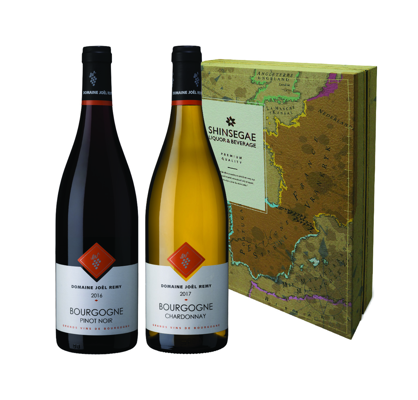 도멘 조엘 헤미의 와이너리는 소량의 품질 좋은 포도만을 엄선해 양조하고 맞춤형 캐스크를 제작해서 도멘 조엘 헤미만의 캐릭터를 더한다. 부르고뉴 피노누아는 화사한 아로마와 다양한 베리류의 맛이 느껴지는 레드 와인이고 부르고뉴 화이트는 밝은 금빛을 띠고 미네랄, 토스티한 노트가 느껴지는 화이트 와인이다. 와인 애호가들을 위한 추천하는 실속 있는 부르고뉴 와인세트다.