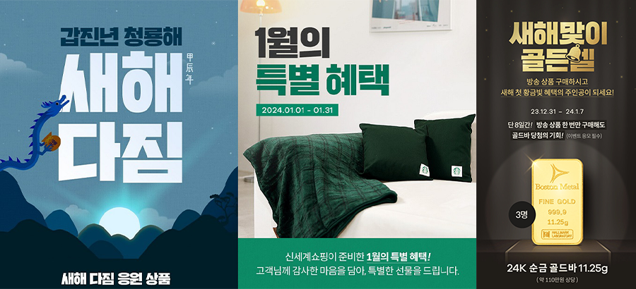 신세계라이브쇼핑이 용의 해를 맞아 24K 골드바 경품과 스타벅스 담요 증정, 결심 상품 할인 이벤트 등을 진행한다.