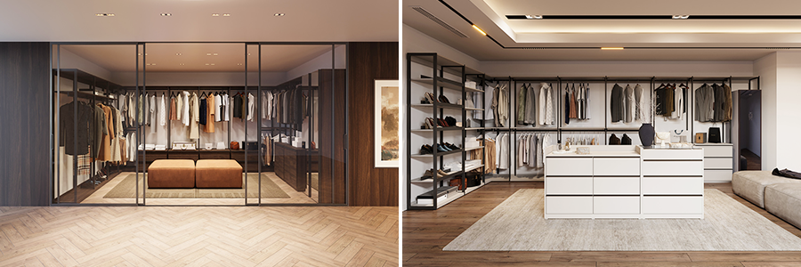 까사미아 ‘뉴로브’는 행거장 · 선반장 · 서랍장 · 수납장 · 가전장 · 낮은장 · 도어옷장 등 총 27종의 모듈 옵션과 3가지 색상 조합으로 사용자의 라이프스타일과 취향에 따라 다양한 드레스룸을 연출할 수 있다.