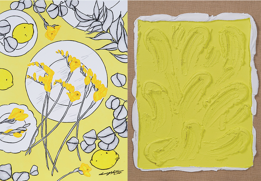 이번 프로젝트에는 최근 미술시장에서 인기가 높은 장마리아 작가를 비롯해 청신, 모모킴, 안성하, 정수진, 아방 등 국내에서 주목받는 30~40대 여성 신진 작가 6명이 참여했다. 작가들은 자신만의 언어와 예술적 방법으로 ‘봄’을 상징하는 프리지아 향수를 표현했는데, 아크릴부터 유화, 과슈, 콜라쥬 등 다양한 재료와 기법을 사용해 각기 다른 개성과 스토리를 담아냈다.