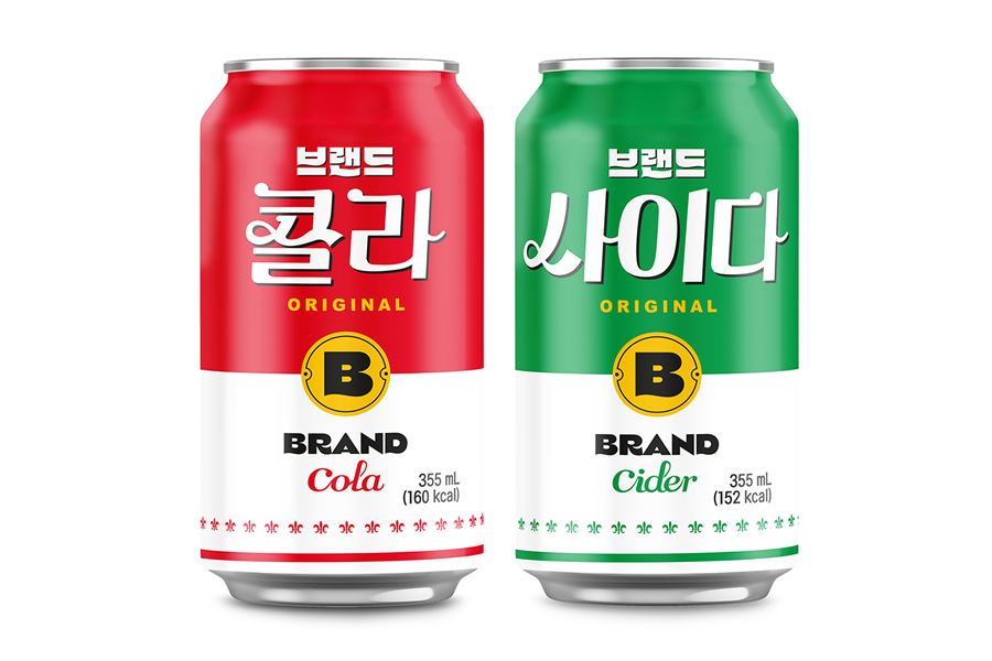 이 같은 ‘노브랜드 버거’의 독자적 브랜드 경험의 일환으로 선보인 ‘브랜드 콜라’와 ‘브랜드 사이다’의 패지키는 각 음료를 상징하는 빨간색과 초록색에 흰색을 배색으로 조합하고, 곳곳에 팝아트적 요소를 더해 간결하면서도 감각적인 예술품으로서의 느낌을 살린 것이 특징이다. 특히 패키지 중앙에는 ‘노브랜드 버거’에서만 즐길 수 있는 ‘브랜드’라는 것을 담아 노란색 로고에 알파벳 ‘B’를 형상화해 포인트 요소로 배치했다. 또한 패키지 표면은 매끄럽고 빛나는 소재를 활용해 청량감을 극대화한 탄산음료라는 점도 시각화 했다.