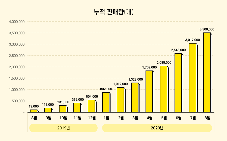 맛도 놓치지 않았다. 일반 패스트푸드 전문점보다 가격은 저렴한데, 맛은 수제버거를 연상케 한다. 노브랜드 버거는 일약 버거계의 베스트셀러로 부상했다. 지난 1년 간 누적 햄버거 판매량은 350만 개를 넘어섰다. 코로나19도 상승세를 막지 못했다. 지난 6월부터는 전월 대비 50만 개 가까이 판매가 늘었다. 주요 매장에서는 하루 1,000개가 넘는 판매량을 기록했다. 매장 수는 론칭 이후 1년 만에 45개를 돌파했다.