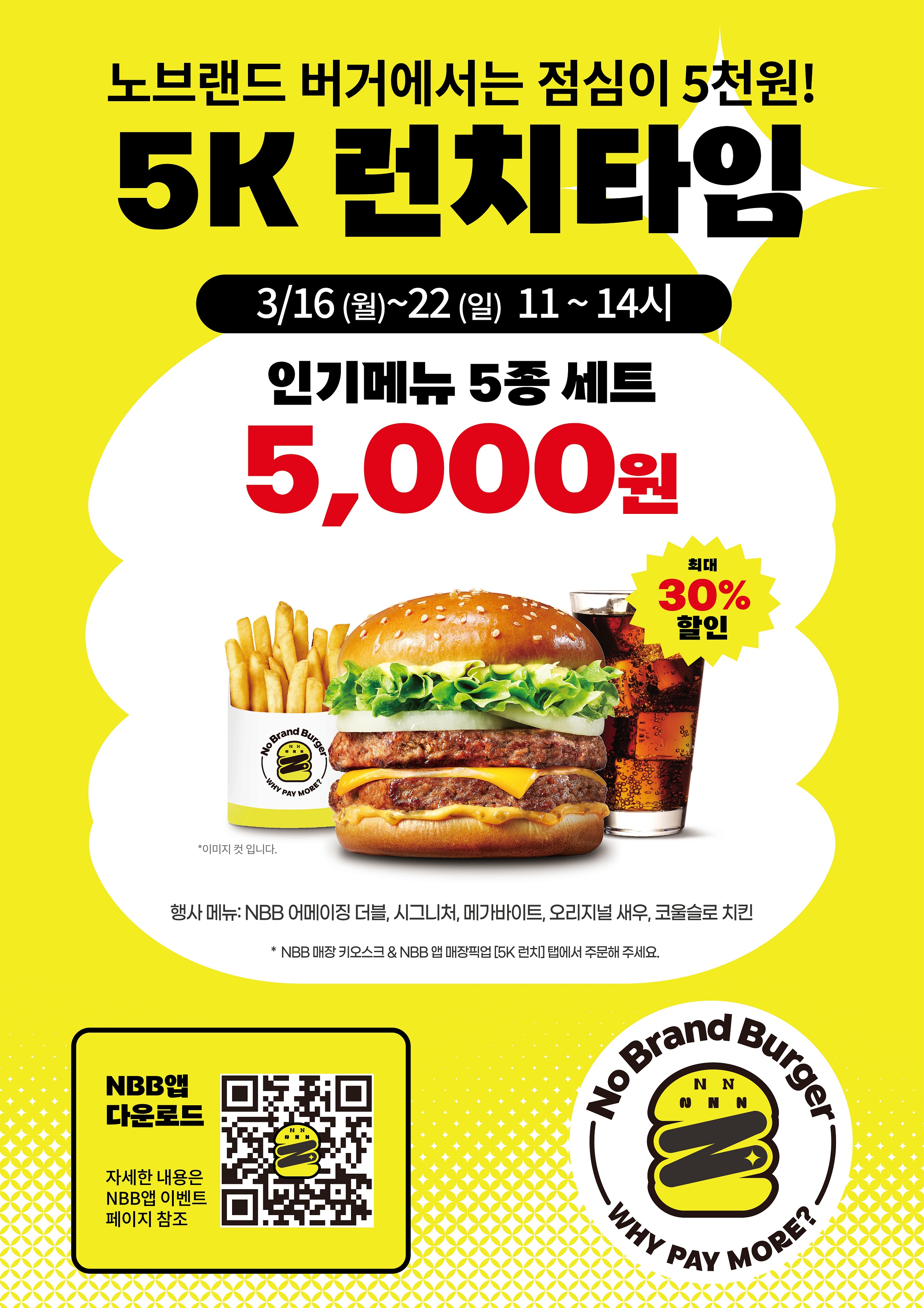 MEDIA 글자 크기 보통 크게 아주 크게 공유하기 페이스북 X 카카오톡 링크 복사 링크 복사됨 도구 보기 이미지 다운로드 “점심시간엔 인기세트 5000원!”…노브랜드 버거, ‘5K 런치타임’ 프로모션 실시 2026.03.13 신세계푸드