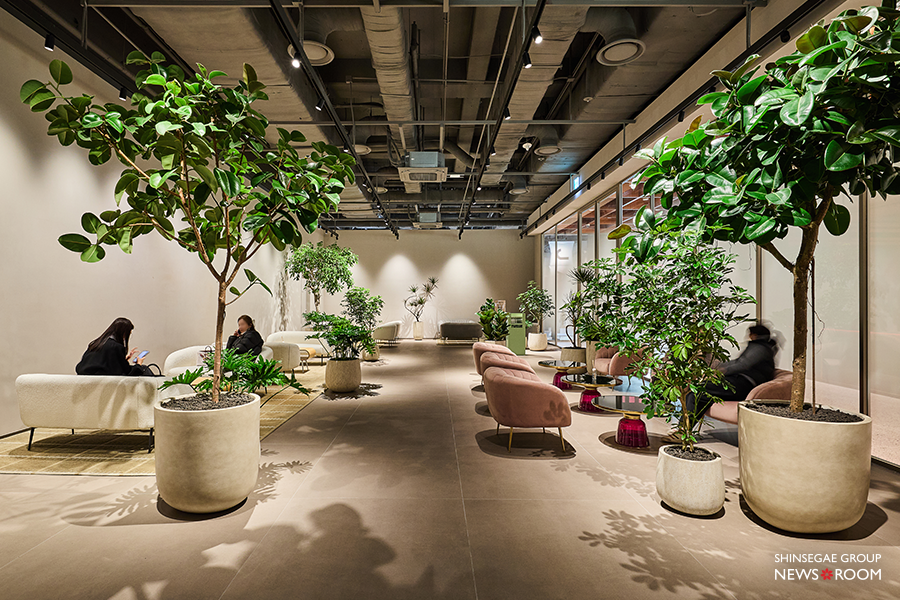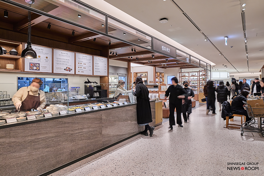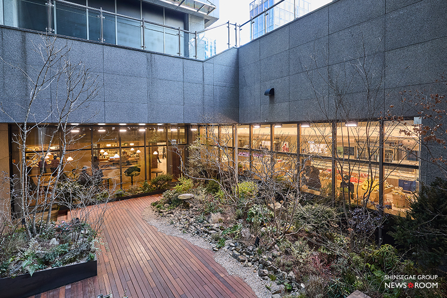 공간 곳곳에는 ‘머무름’을 위한 설계가 이어진다. 식품관에선 보기 드문 ‘중정’을 조성해, 지하 1층이지만 자연광이 깊숙이 스며들어 시간대와 계절의 변화를 느낄 수 있도록 설계했다. 공간 전체에 여백을 더함으로써, ‘도심 속 휴식처’처럼 느끼게 해준다.