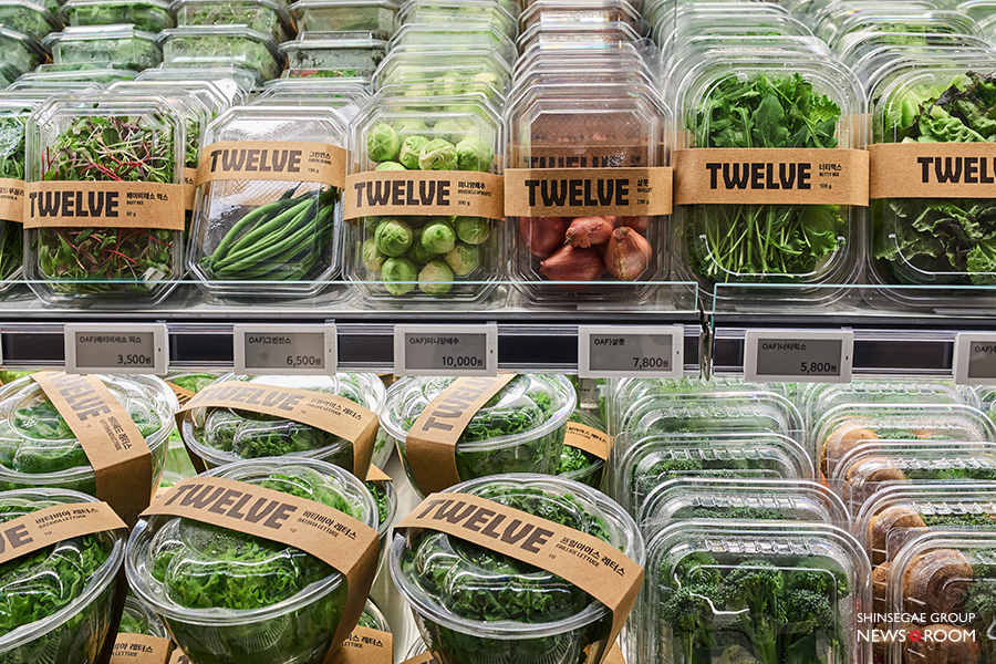 흔히 보던 식재료지만, 신세계식 큐레이션과 정갈한 진열, 트웰브의 패키징이 더해지며 장보기가 한층 감각적으로 느껴진다. 김치와 밑반찬, 밀키트 등 전 품목에 트웰브 패키징을 적용해 카테고리 전반에 통일감을 줬다.