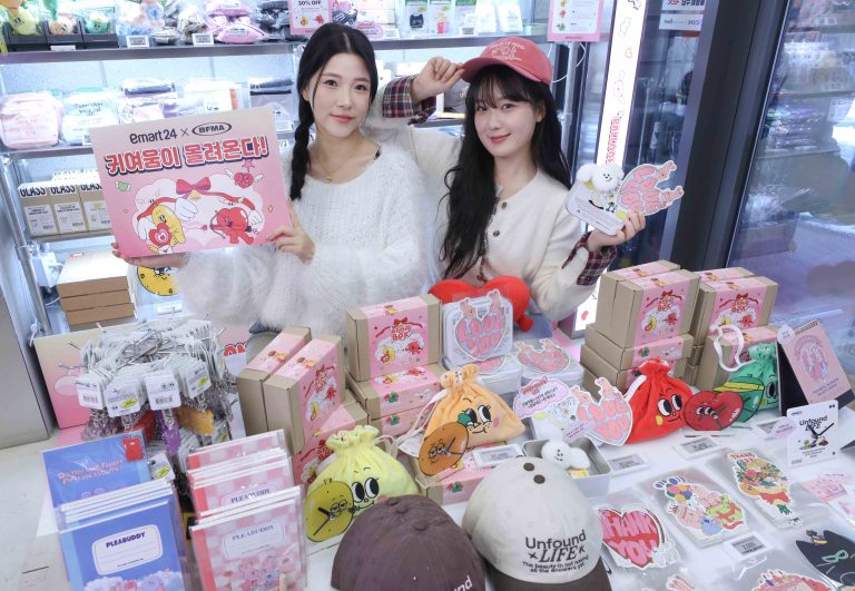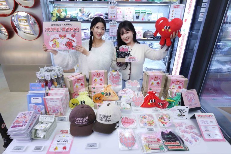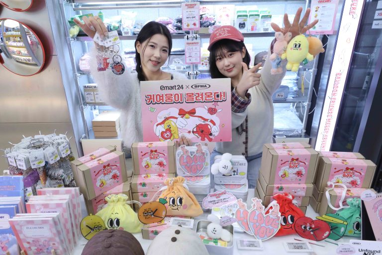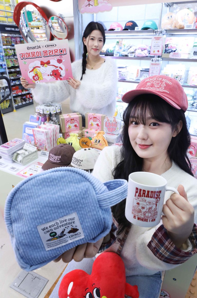 2월 2일 월요일 오전 이마트24 ‘트렌드랩성수’에서 모델들이 ‘벌룬프렌즈’ 브랜드팝업존 상품을 소개하고 있다. 이번 브랜드팝업존은 ‘엉망진창인 당신의 사랑을 응원한다’는 의미의 ‘CHEERING FOR YOUR MESSY LOVE’ 컨셉으로 선보이며 3월 14일(토)까지 운영된다. 이마트24가 플래그십스토어 ‘트렌드랩성수’에서 감성 캐릭터 ‘벌룬프렌즈’와 손잡고 브랜드팝업존을 새단장해 선보인다. 특히,