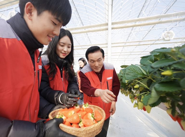 신세계푸드, 논산 딸기 협력농가 일손 돕기 나서지난달 31일 신세계푸드 임직원과 가족들이 충남 논산시 광석면에 위치한 베이커리용 딸기 공급 협력 농가에서 모종 잎 제거, 수확 및 선별 작업을 하는 봉사활동을 펼쳤다. 이날 봉사활동에는 신세계푸드와 상생 업무협약 및 협력활동을 이어가기 위해 백성현 논산시장(오른쪽)이 동참해 의미를 더했다. / 신세계푸드