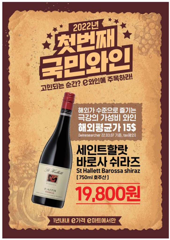이마트, 올해 첫 국민와인 선보인다.. ‘세인트할랏 바로사 쉬라즈’ 19,800원 판매