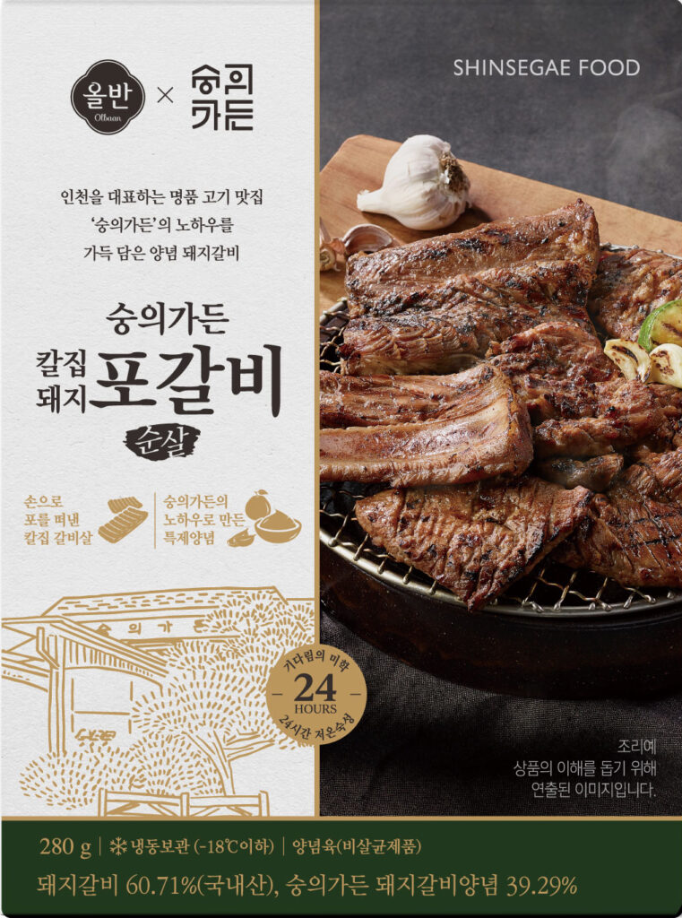신세계푸드가 인천지역 대표맛집 ‘숭의가든’과 협업하여 ‘올반X숭의가든 칼집 돼지포갈비’를 출시한다.