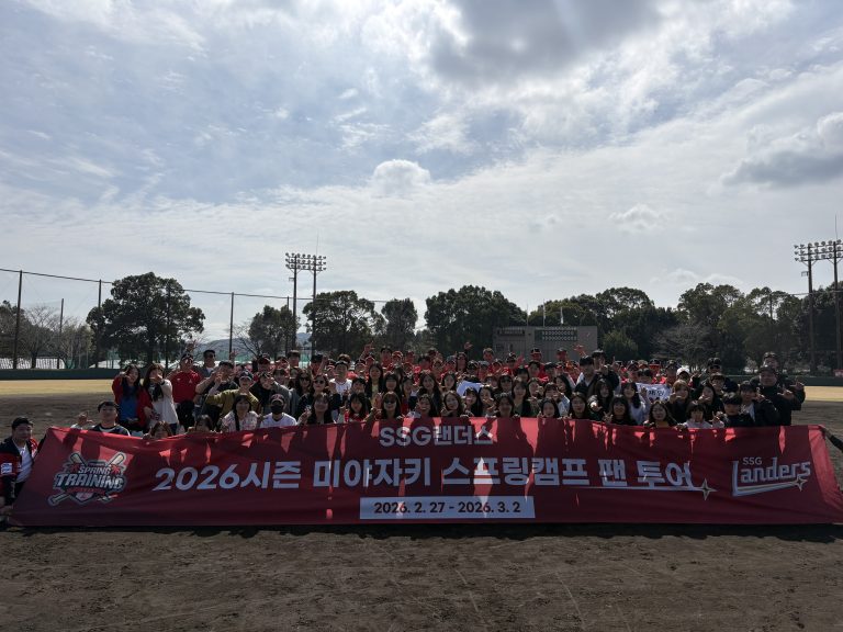 SSG랜더스(대표이사 김재섭, 이하 SSG)는 2월 27일(금)부터 3월 2일(월)까지 진행된 ‘2026시즌 미야자키 스프링캠프 팬투어’를 성공적으로 마무리했다. 이번 팬투어는 모집 인원을 전년 대비 2배 늘린 총 60명의 팬들이 참가했으며, 단순 관람을 넘어 선수단과 직접 교감할 수 있는 다양한 ‘팬 맞춤형’ 프로그램으로 강화해