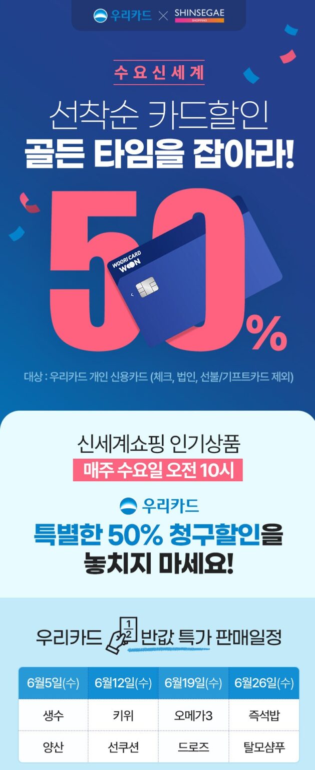 신세계라이브쇼핑, 매주 수요일마다 우리카드와 50% 할인 이벤트 진행