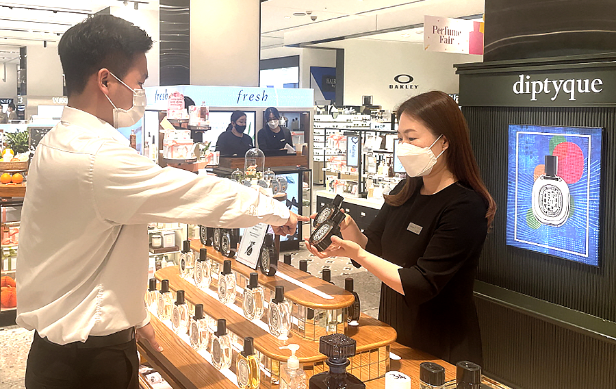 타임스퀘어점 명품관 1층에서는 오는 28일까지 니치 향수 브랜드로 유명한 딥티크와 입생로랑 시향 팝업 행사도 열린다. 안전한 쇼핑 환경 조성을 위해서 사전 준비한 시향지로만 시향이 가능하다.
