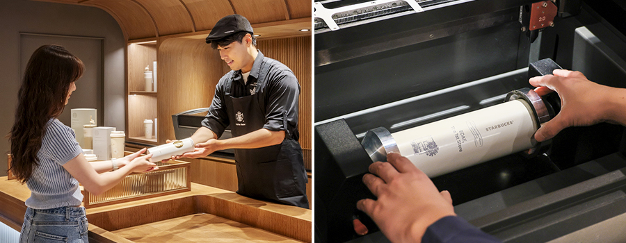 스타벅스는 지난해 개점 25주년을 맞은 1호점인 이대점을 9월에 스페셜 매장으로 리뉴얼하면서 1호점이라는 독보적인 상징성을 내세우면서 차별화된 경험을 전달하기 위해 국내 스타벅스 매장 최초로 텀블러 각인 서비스를 이대점에 도입했다.